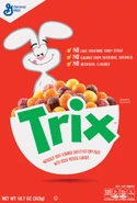 Cinnamon the bunny also known as The Trix Rabbit is the main mascot Of the Trix cereal and commercials, it is suggested that it is his desire to get to eat Trix yogurt and cereal, but the kids who own it will say to him, "Silly Rabbit! Trix are for kids!"